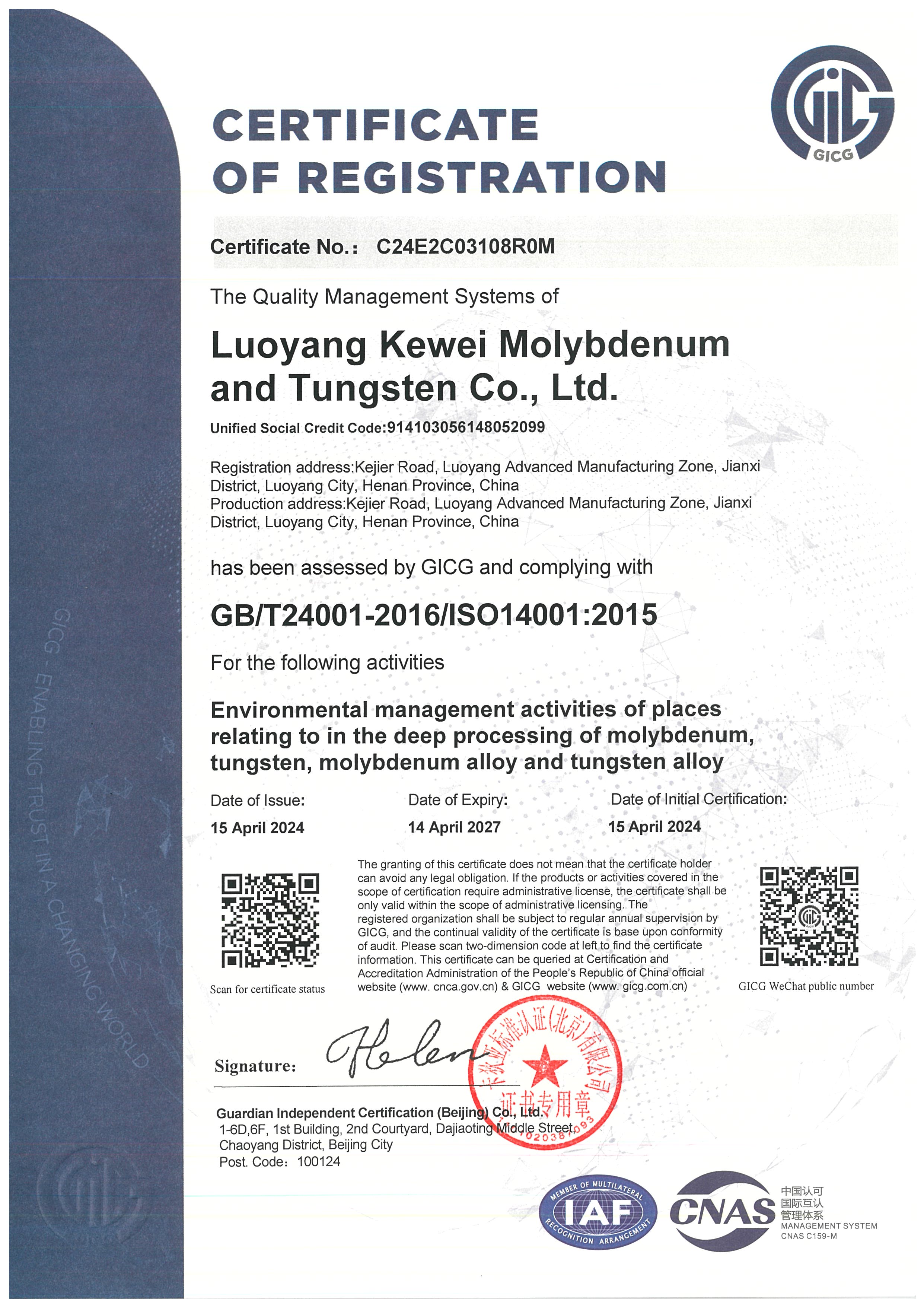 一、企业基本情况: MILE米乐钨钼成立于1996年,注册资金1.05亿元,位于涧西先进制造业集聚区,是一家集设计、研发、生产、销售和服务于一体的钼、钨及其合金新材料精深加工企业。